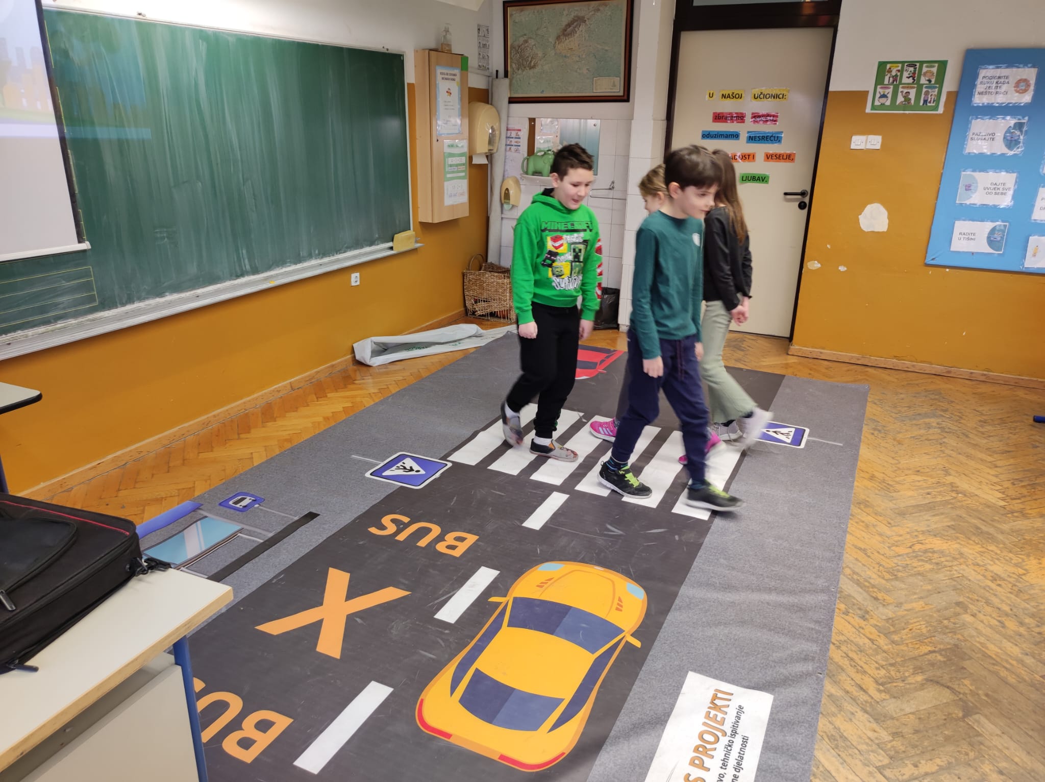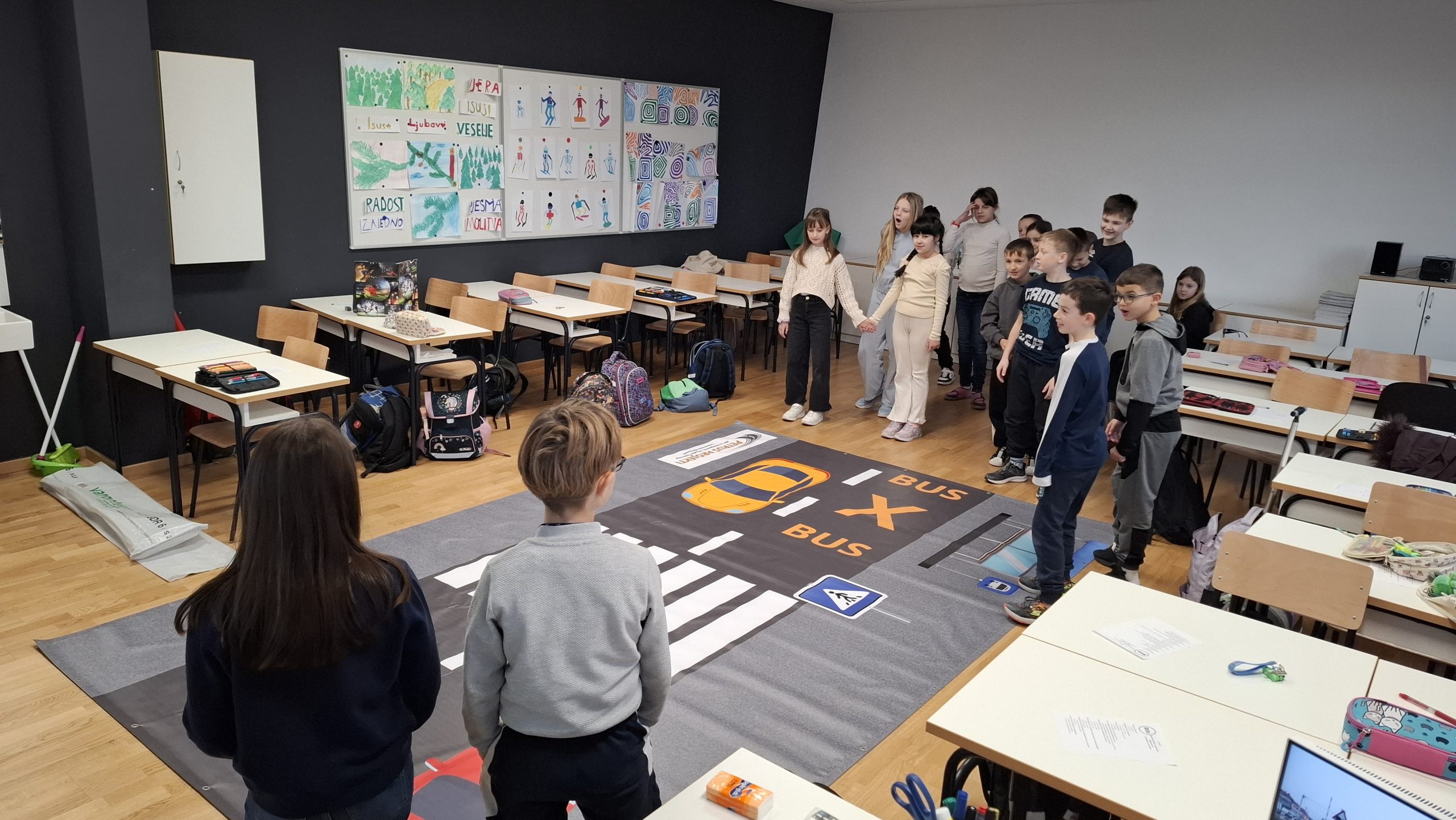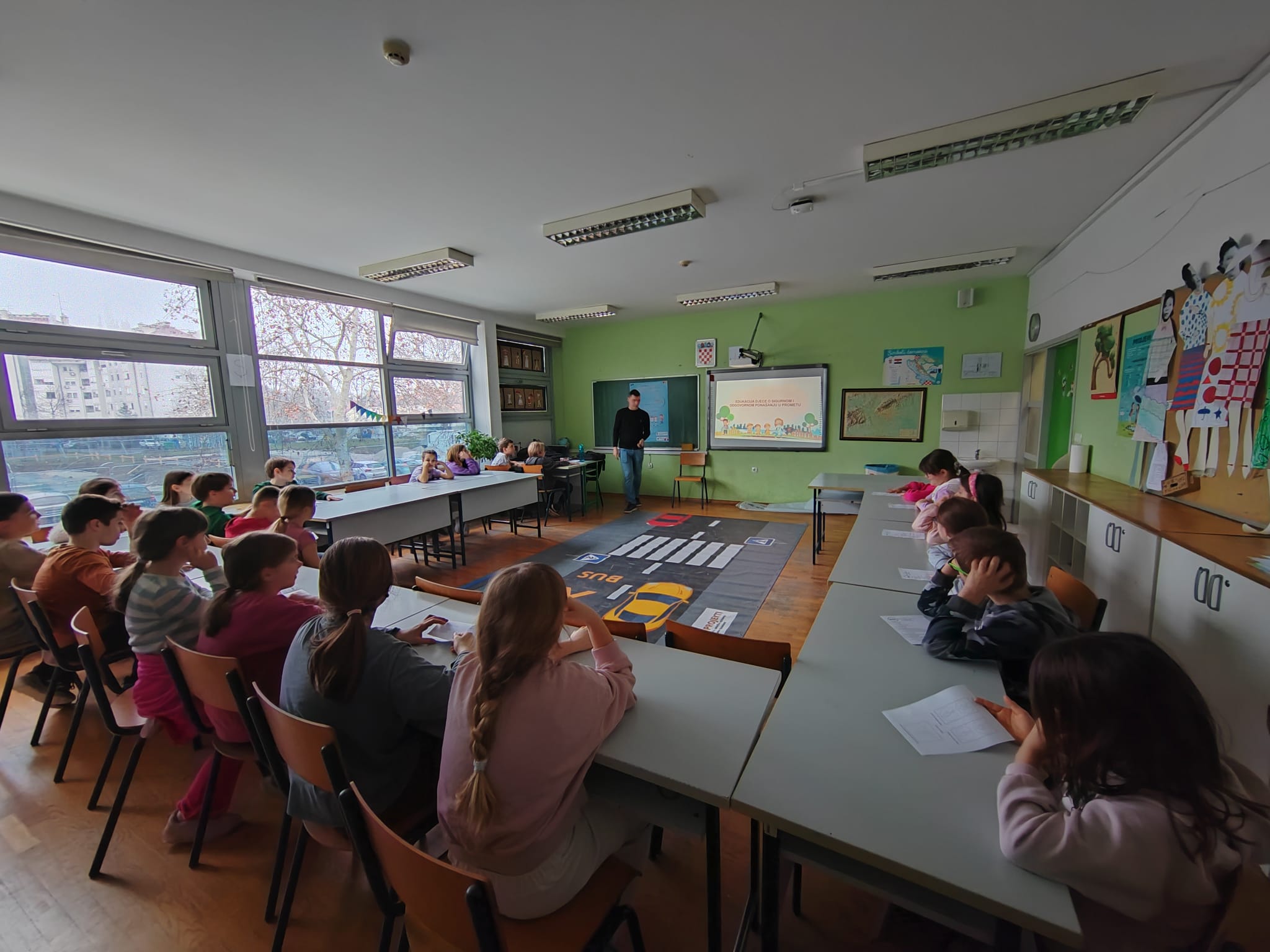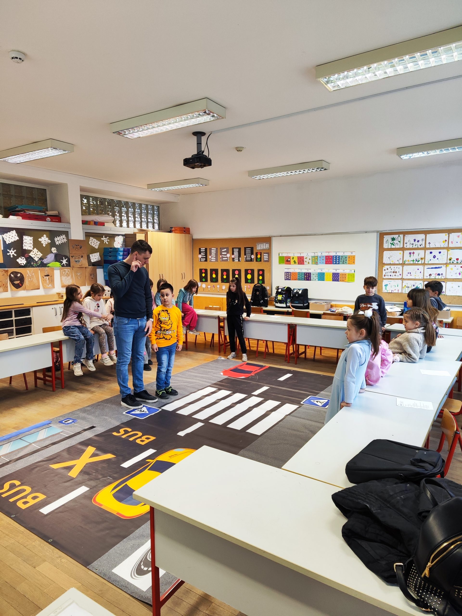 TEORETSKI DIO projekta uključuje teme poput sigurnosti na pješačkim prijelazima, pravilnog ponašanja na nogostupima, pravilnog korištenja biciklističke opreme, ponašanja u vozilima i sl.