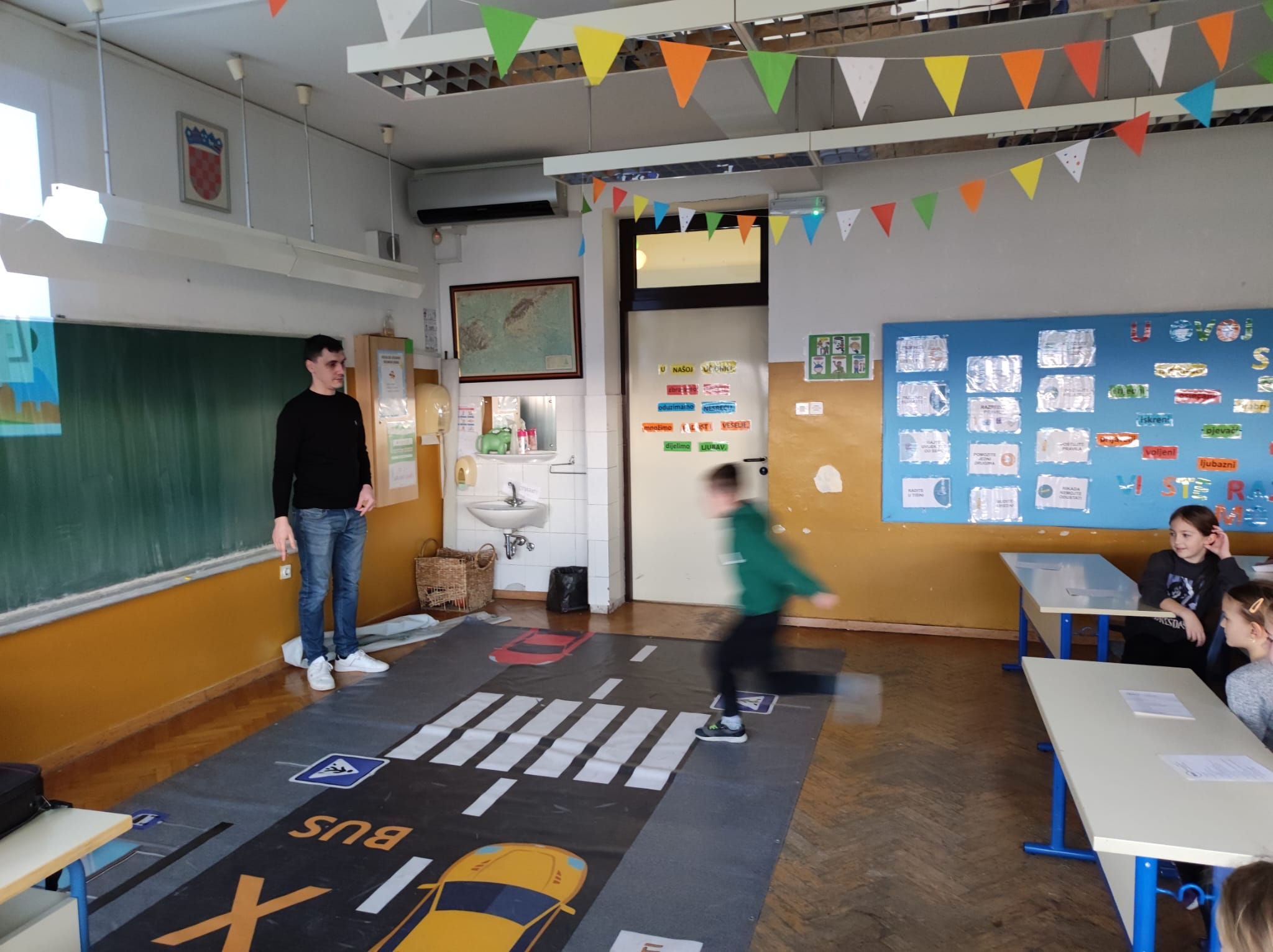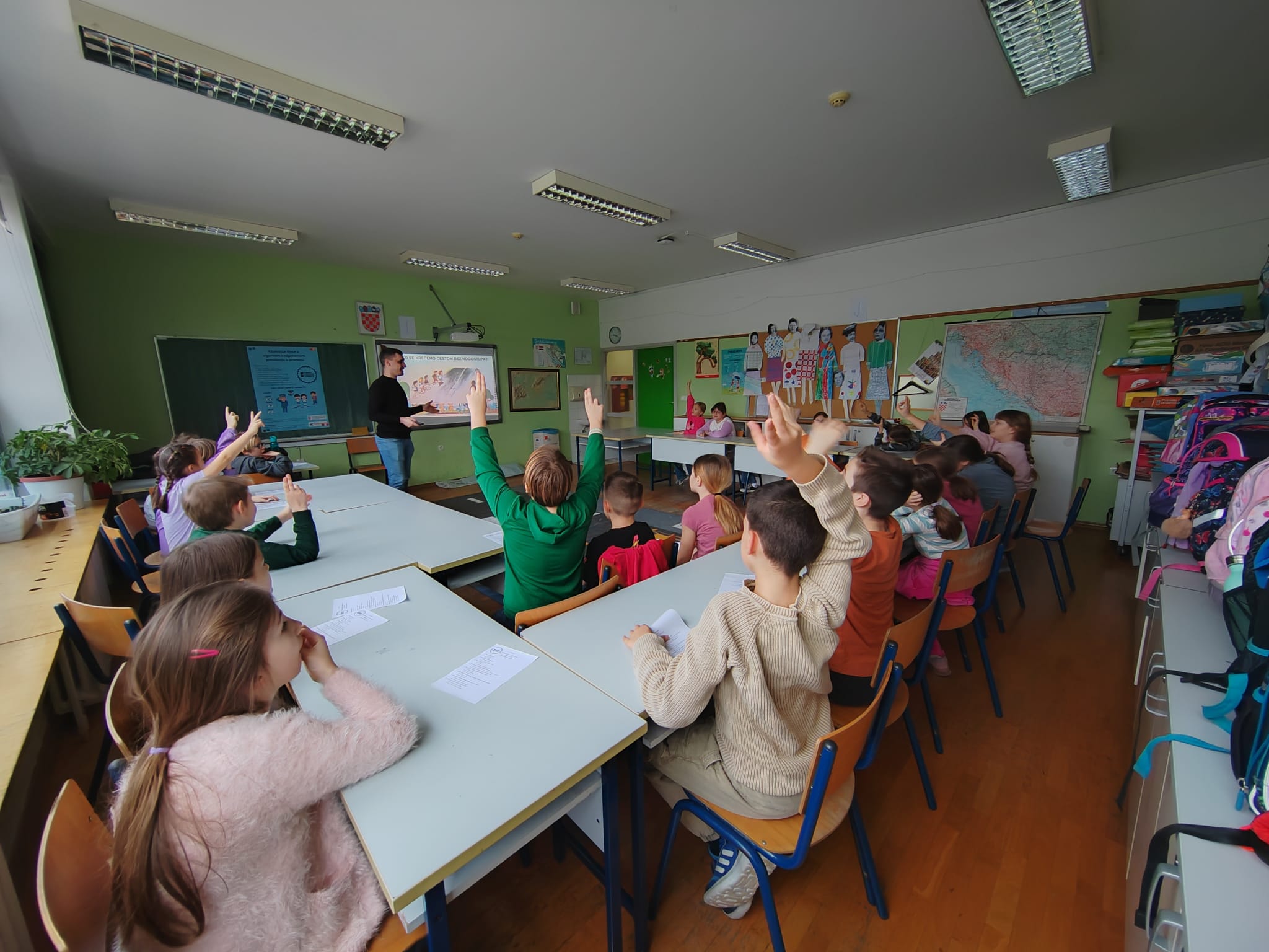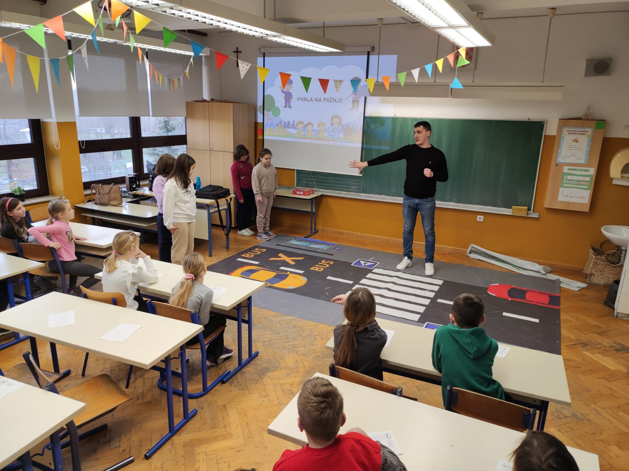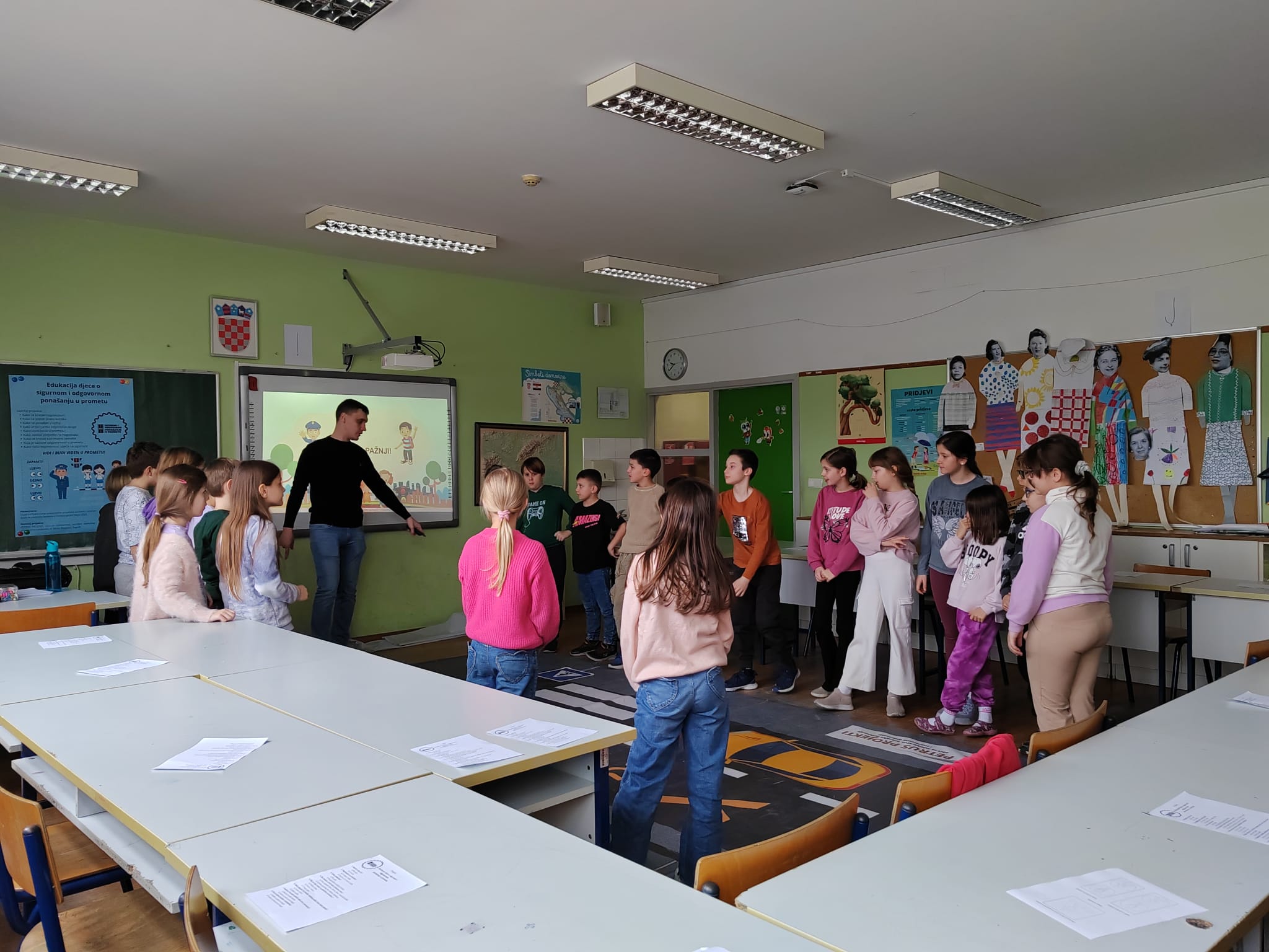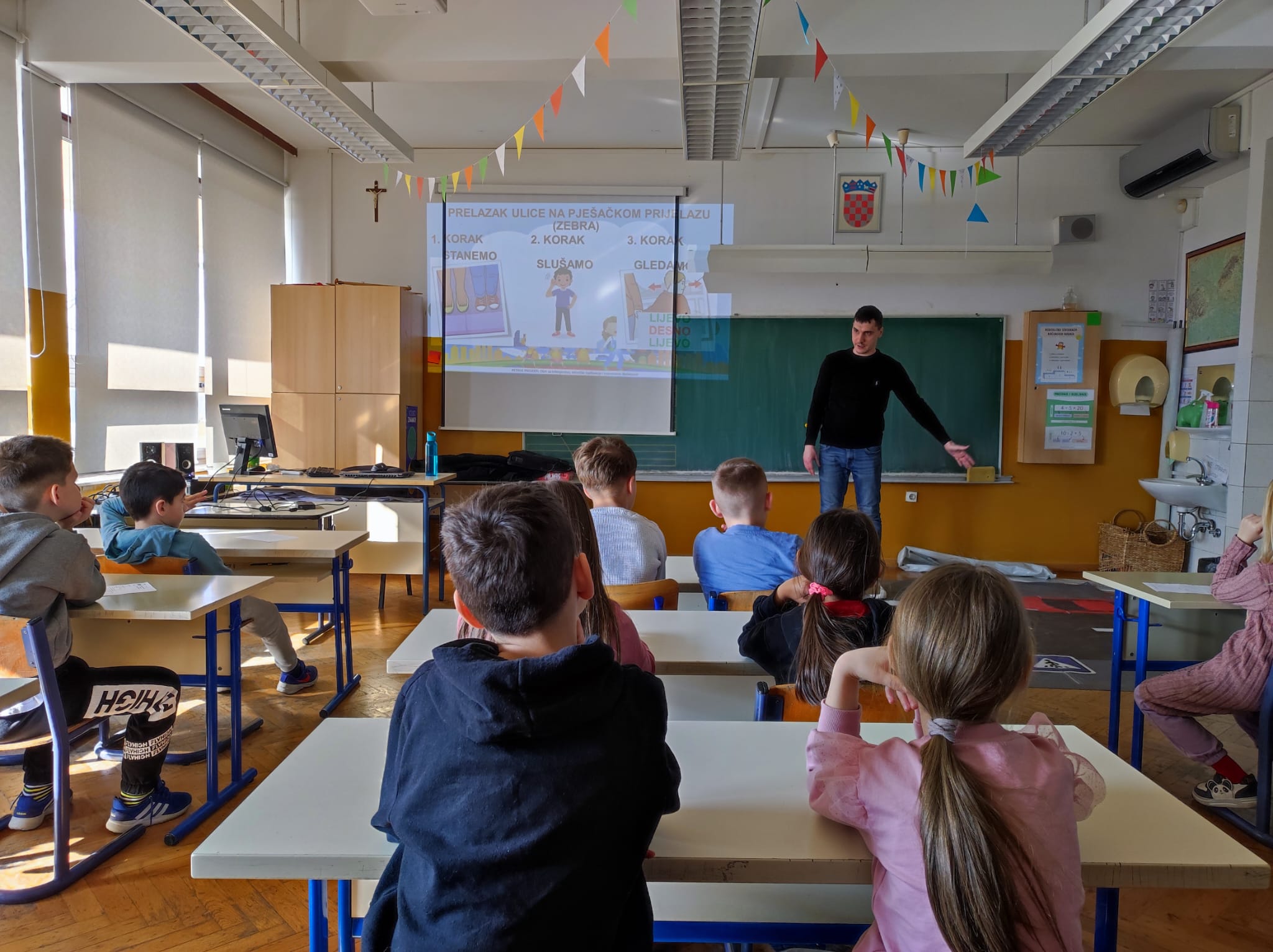 TEORETSKI DIO projekta uključuje teme poput sigurnosti na pješačkim prijelazima, pravilnog ponašanja na nogostupima, pravilnog korištenja biciklističke opreme, ponašanja u vozilima i sl.